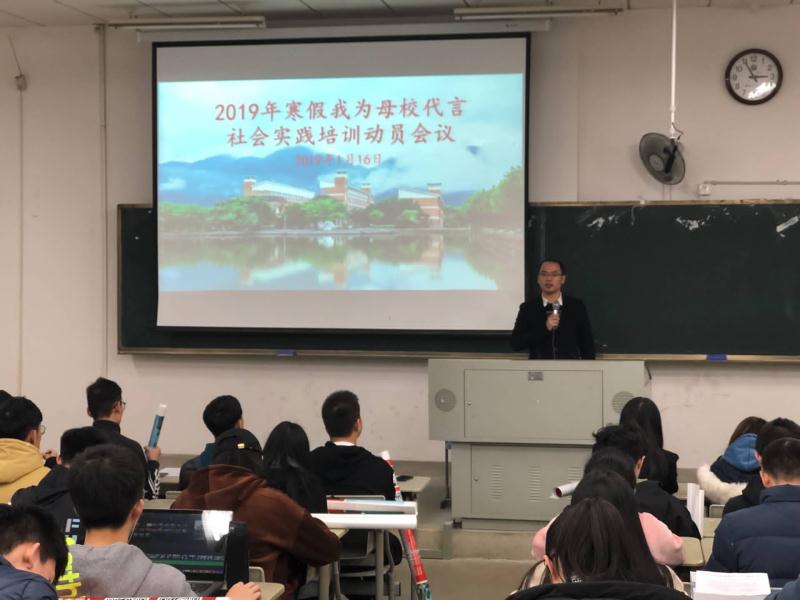 2019年1月16日下午,2019年寒假“我为母校代言”专项社会实践活动培训动员会议在致广1-209召开。