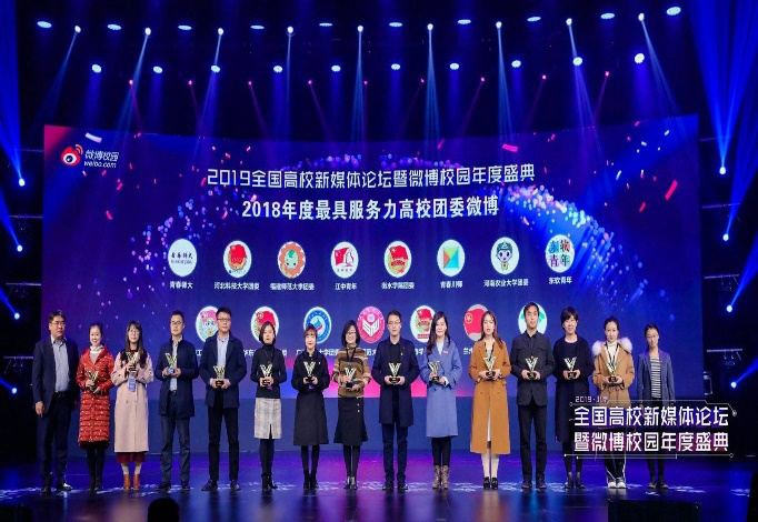 本次盛典上不仅有专家对校园新媒体发展趋势的深入解剖,更有诸如清华大学、浙江大学等高校现场分享高校新媒体运营的经验与独特方法。同时,本次盛典还对2018年一批优秀的高校新媒体和校园自媒体机构等进行了表彰。我校团委微博在本次盛典中荣获2018年度最具服务力高校团委微博称号。