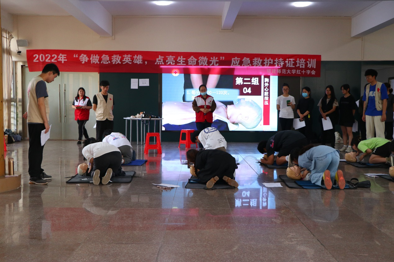 2022年5月18日-2022年5月22日,为提高校内我校师生的应急救护能力,校红十字会联合福建省红十字会举办了以“争做急救英雄,点亮生命微光”为主题的应急救护持证培训活动。此次活动邀请到福建省红十字会的刘丽琴、黄海萍、林升、陈静、施烨琳老师进行培训和考核工作。