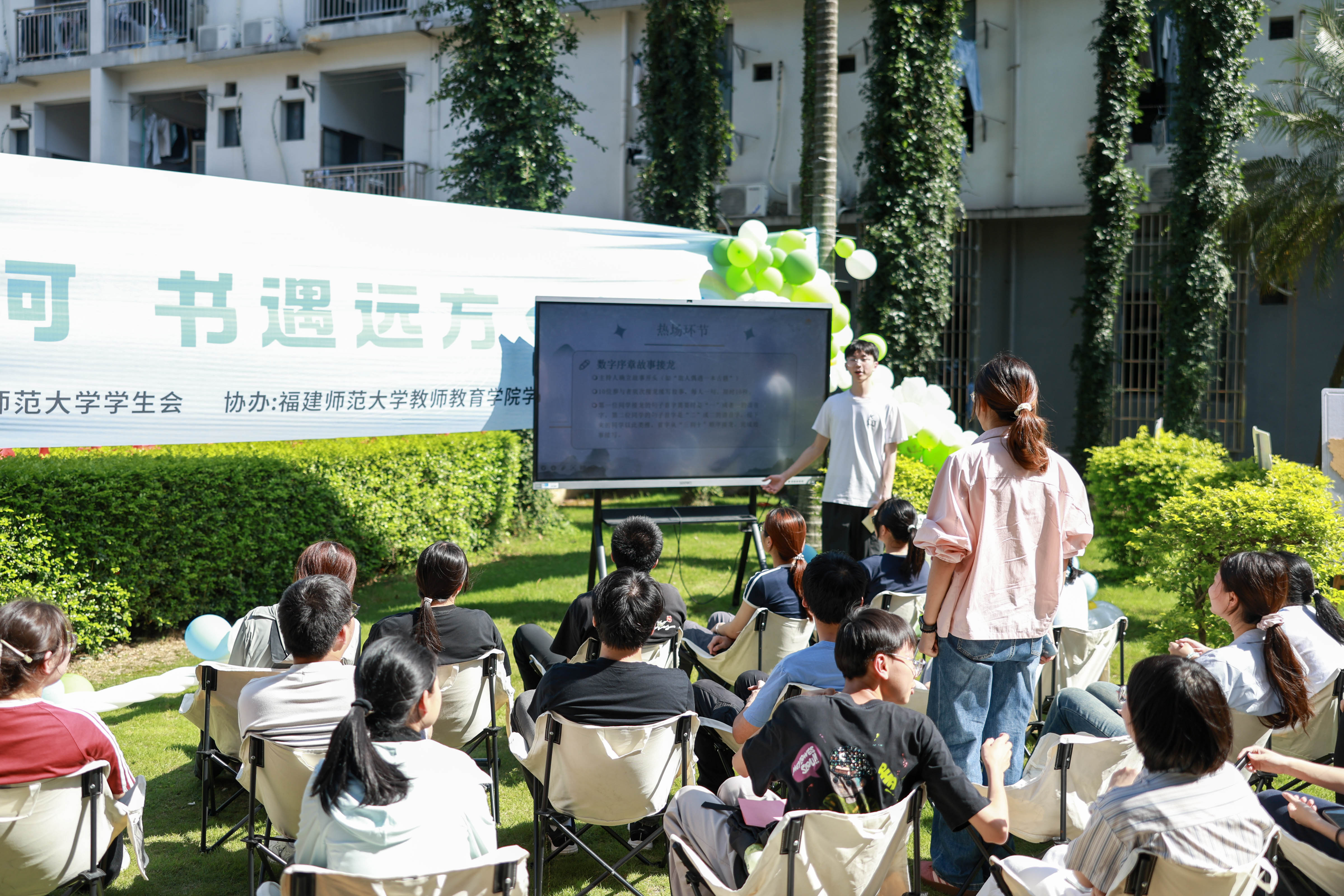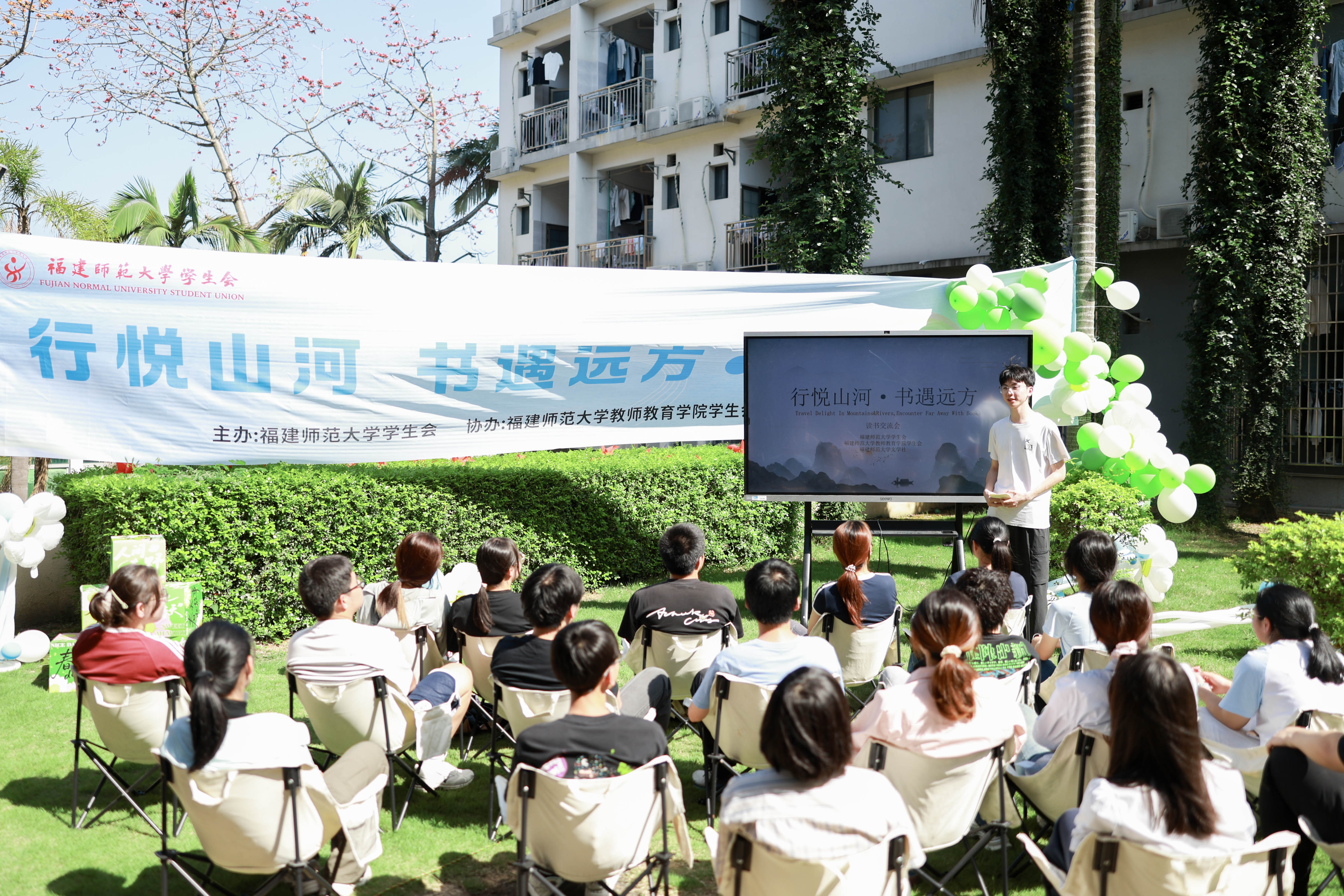 4月19日下午,由福建师范大学学生会主办,教师教育学院团委学生会、福建师范大学文学社协办的“行悦山河·书遇远方”春日草坪读书会在仓山校区宿舍A楼举行。本次活动旨在响应习近平总书记所提出的全民阅读号召,引导青年以文字丈量山河、以阅读拓宽眼界,在书香交流中涵养情怀、增长见识,树立开阔格局与远大志向。