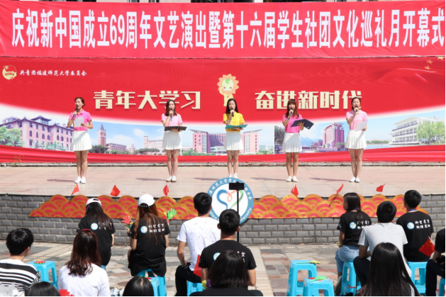 10月1日,由共青团福建师范大学委员会主办,福建师范大学学生社团联合会承办的庆祝新中国成立69周年文艺演出暨第十六届学生社团文化巡礼月开幕式在旗山校区共青团广场顺利举行。