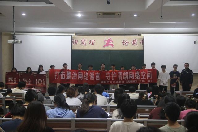 10、近日,环境与资源学院、碳中和现代产业学院邀请福州市公安局上街(高新区)分局长安派出所施豪杰警官作“守护国家安全净土,共创网络文明空间”主题讲座。讲座中,施警官向同学们进行了防诈骗教育,并分享反间谍案例,提醒同学们警惕潜在的间谍,保护国家安全。本次讲座向师生们科普了法律知识,有利于提高师生们的网络法治意识、网络文明素养、国家安全意识。