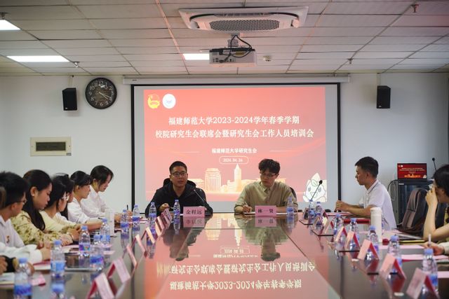 4、4月26日下午,2023-2024学年春季学期校院研究生会联席会暨工作人员培训会在团委楼303召开。校研会陈燕清同学就全国两会精神进行学习分享;校研会马铭宁带领与会人员学习习近平总书记的重要讲话精神;校研会林一贤与各研究生会代表针对本学期工作开展情况展开交流;校团委指导老师在总结阶段充分肯定了校院两级研究生会工作人员的辛勤付出。