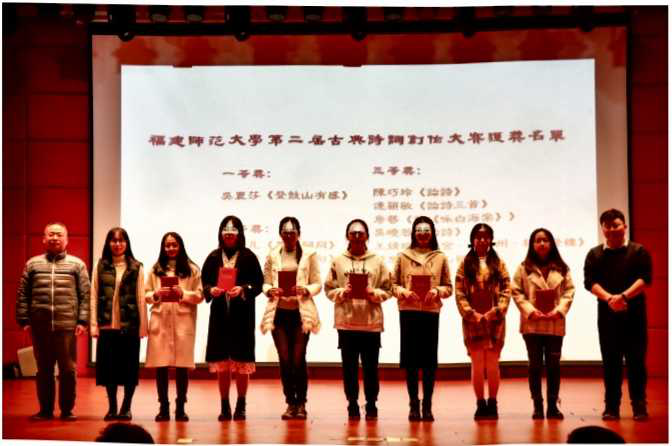由福建师范大学向道国学社主办的白梅传诗意,寒砧映熹微”--福建师范 大学第二届古典诗词创作大赛于2020年11月19日拉开了序幕。12月16日,我校科学会堂举行了隆重的古典诗词创作大奏颁奖仪式。